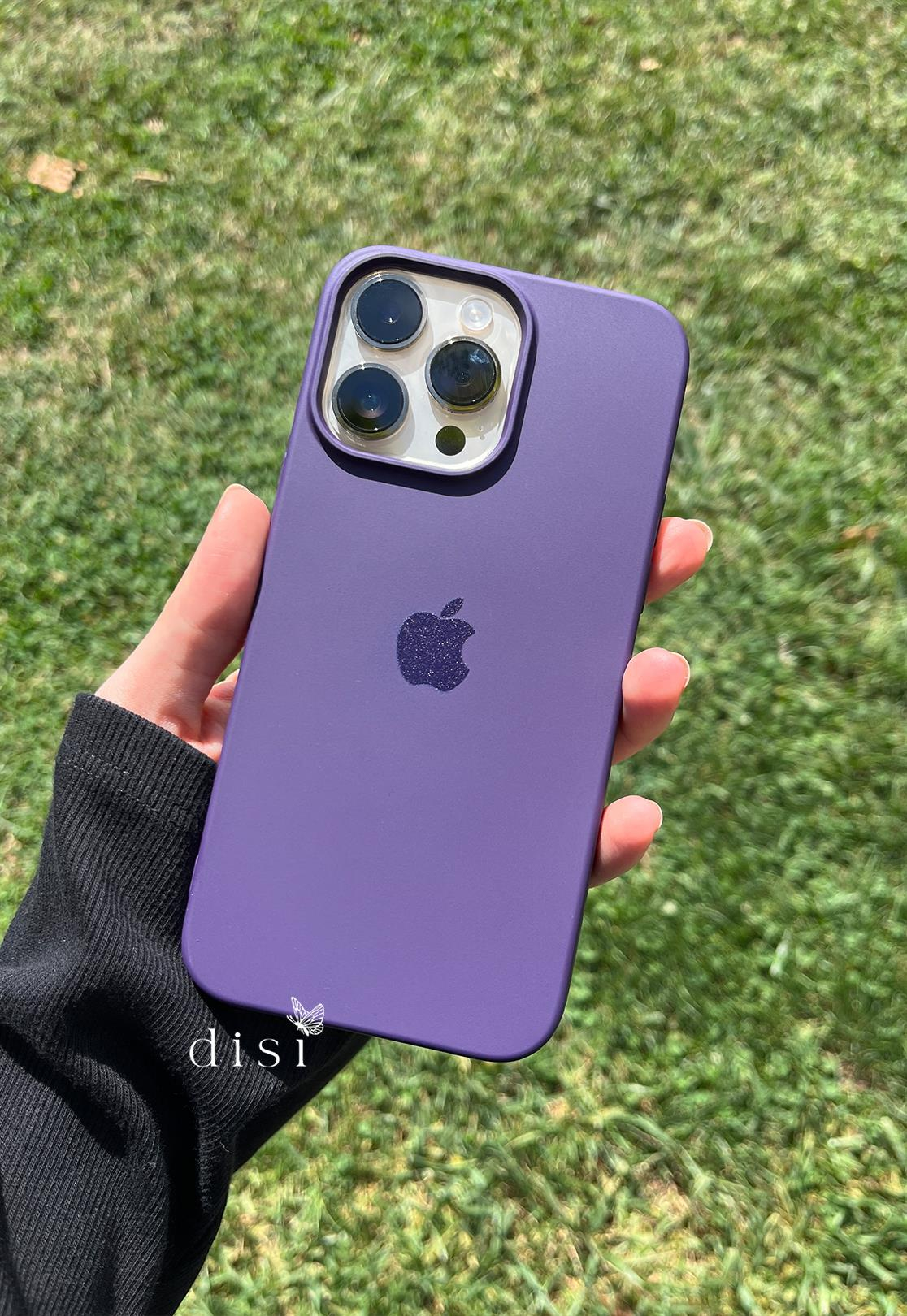 Koyu Mor Baskı Logo İçi Kadife Lansman Telefon Kılıf