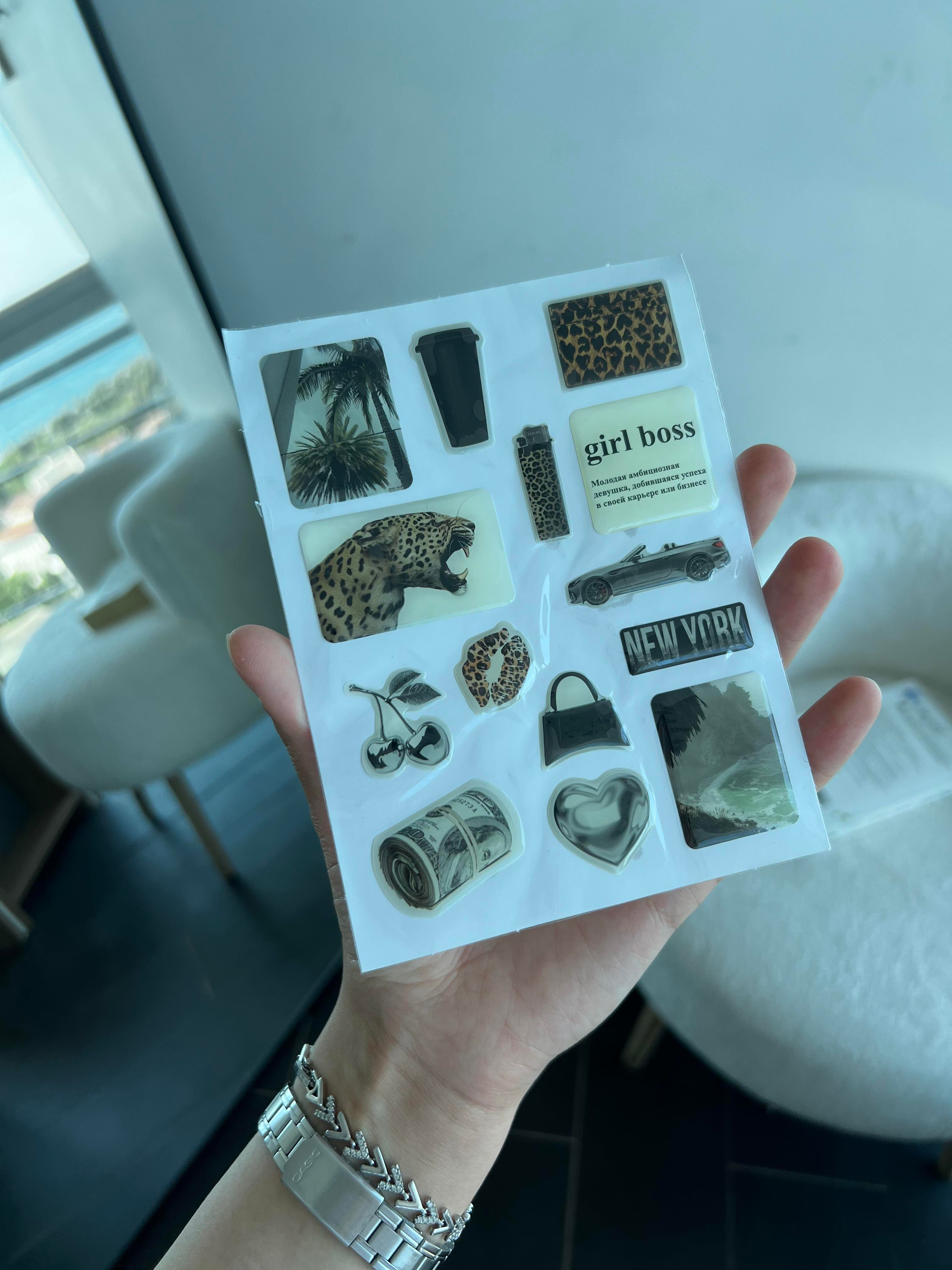 Tarzını yansıt, eşyalarını kişiselleştir! Yüksek kaliteli vinil malzemeden üretilen sticker setlerimiz; suya ve çizilmeye dayanıklı yapısıyla uzun süre ilk günkü parlaklığını korur. Özgüvenin ve gücün simgesi Vahşi Güç Sticker Seti, leopar desenleri, lüks detaylar ve şehir ruhunu bir araya getiriyor. Gücünü yansıtırken aynı zamanda tarzına vahşi bir dokunuş ekle! Laptop, telefon kılıfı, defter, valiz veya ayna gibi düz yüzeylere kolayca yapıştırabilirsin.